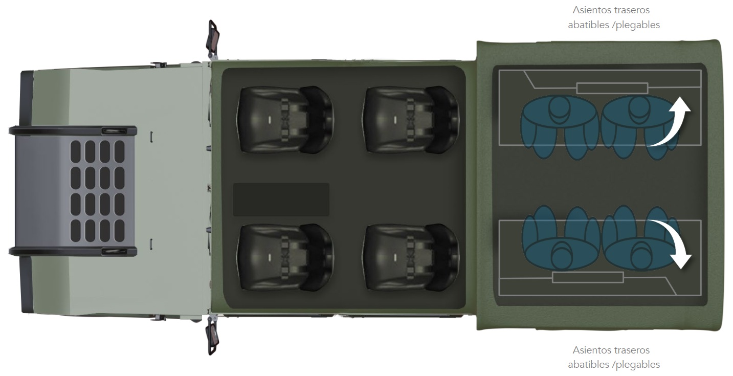 La cabina modular se adapta y se fija a nuestra serie SRV X10 de 3800 mm de distancia entre ejes.